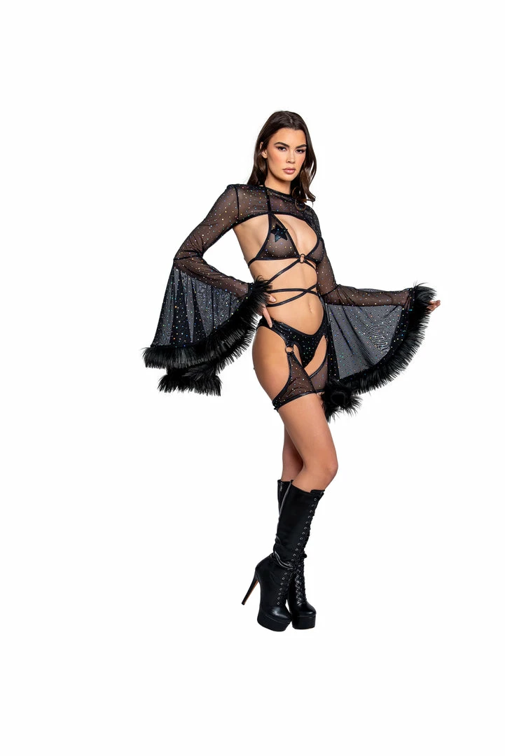 J-Valentine, Inc FR142 – Holographic Dot Faux Fur Trimmed Bell Sleeve Shrug TOPS